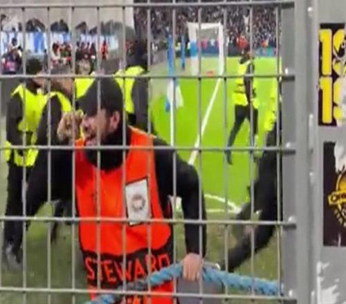 纽卡欧冠客战输马赛,球场一保安对着客场球迷庆祝+做哭脸