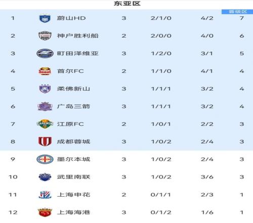 亚冠最新积分榜
