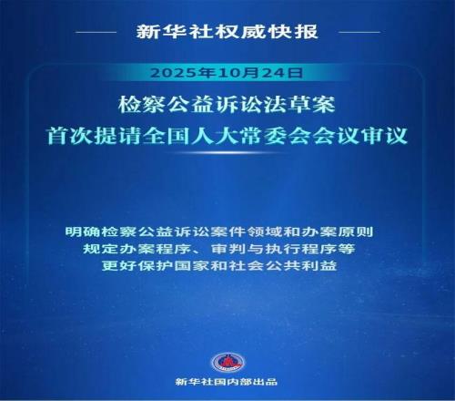 检察公益诉讼法草案24日提请十四届全国人大常委会第十八次会议审议。草案共6章53条,对检察公益诉讼办案领域、原则、职权配置及办案程序等作出规定。
