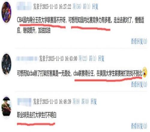 对于林葳而言,他似乎已经在教练组眼里出现了信任危机。NCAA生涯前三战,他合计17中1,三分球10中0,仅得到7分。作为CBA联赛的本土得分王,林葳在NCAA却遭遇拿到两位数得分都很困难的窘境,这从另一个角度也凸显了国内联赛的竞争力有多差。不少球迷也直言:职业球员去打大学生都打不明白。