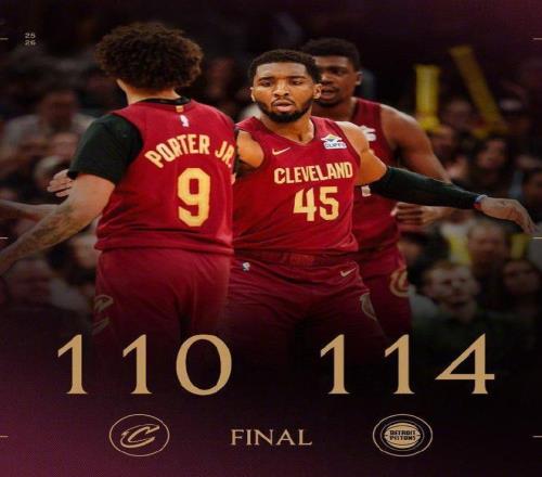北京时间1月5日,NBA常规赛活塞客场对阵骑士,活塞在坎宁安与詹金斯均是得分25+引领下,最多时刻领先13分优势,最终活塞114-110战胜骑士巩固东部第一,骑士结束3连胜。