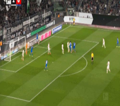 第45分钟,加西亚打门,桑德尔自摆乌龙,门兴1-1药厂