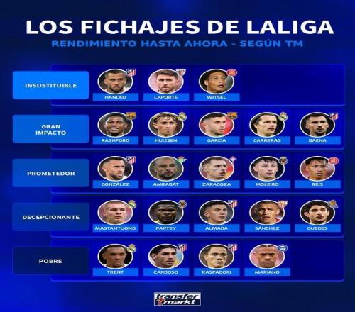 北京时间12月24日,德转对西甲今夏的几笔重要转会进行了评级,其中汉茨科、拉波尔特以及维特塞尔被评为无可替代...